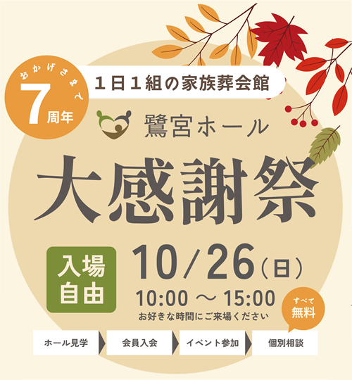 おかげさまで鷺宮ホールは7周年を迎え、これまで地域の皆様のお葬式を数多くお手伝いさせていただきました。